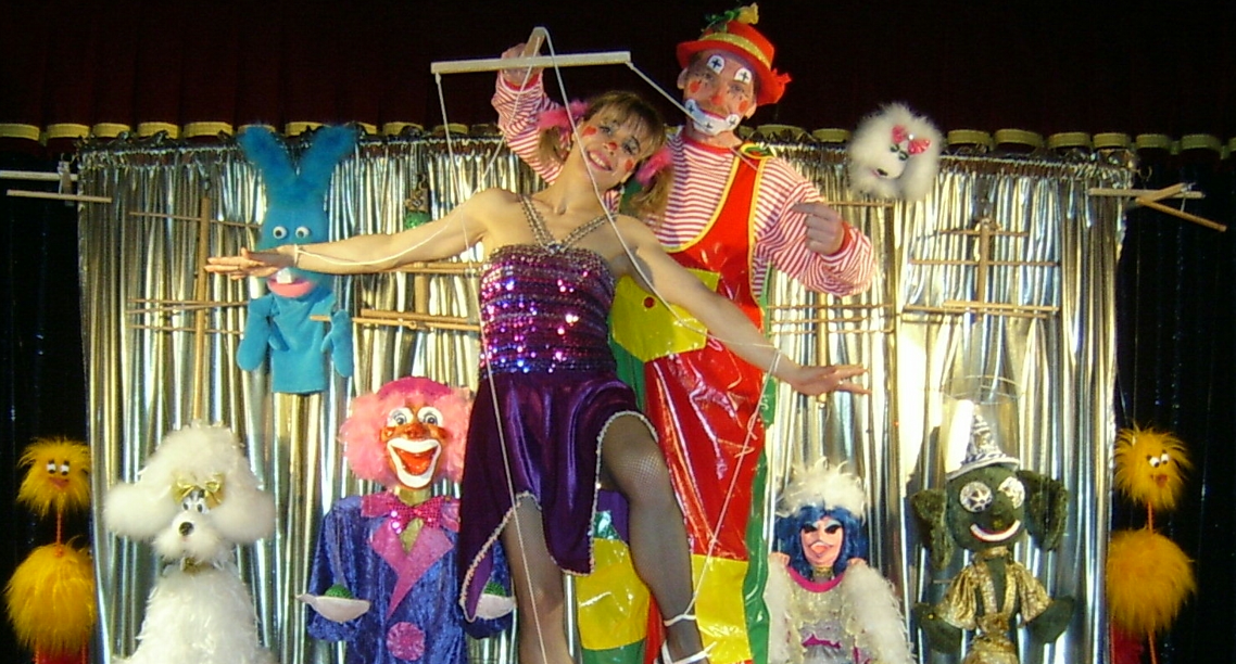 Wir präsentieren Ihnen 60 min. moderne Marionettenshow mit schönen großen Marionetten.